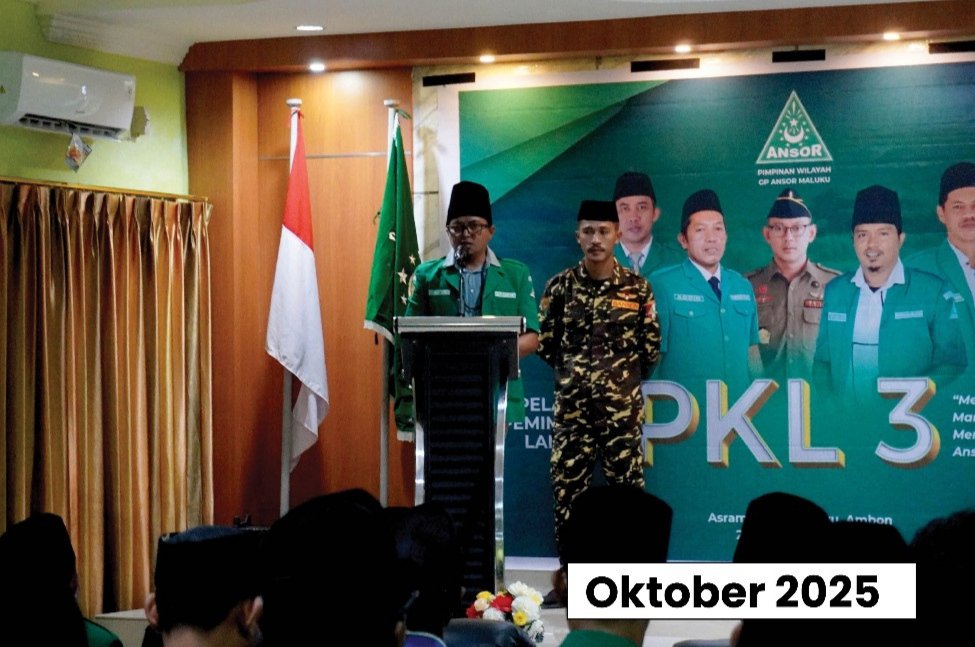 Ambon, 24 Oktober 2025 — Ketua Pimpinan Wilayah Gerakan Pemuda Ansor (PW GP Ansor) Provinsi Maluku, H. Ridwan Nurdin, menegaskan pentingnya penguatan sistem kaderisasi yang lebih efektif dan menyeluruh dalam tubuh Ansor Maluku. Hal itu ia sampaikan saat membuka Pelatihan Kepemimpinan Lanjut (PKL) ke-III yang digelar di Aula Musdalifa, Asrama Haji Waiheru, Kota Ambon, Kamis (23/10/2025).